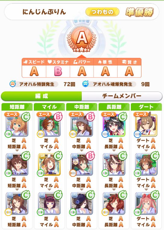 勝ったタキオンとは別の方のチームで、この方のデバフがいちいち自分のチームメンバーに思い切り刺さった挙げ句