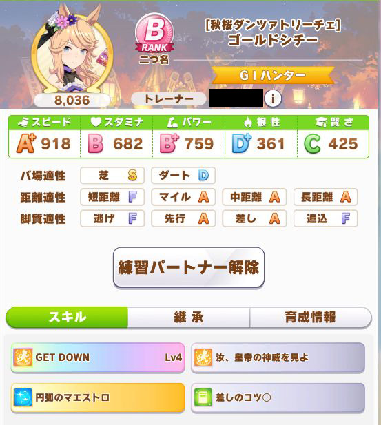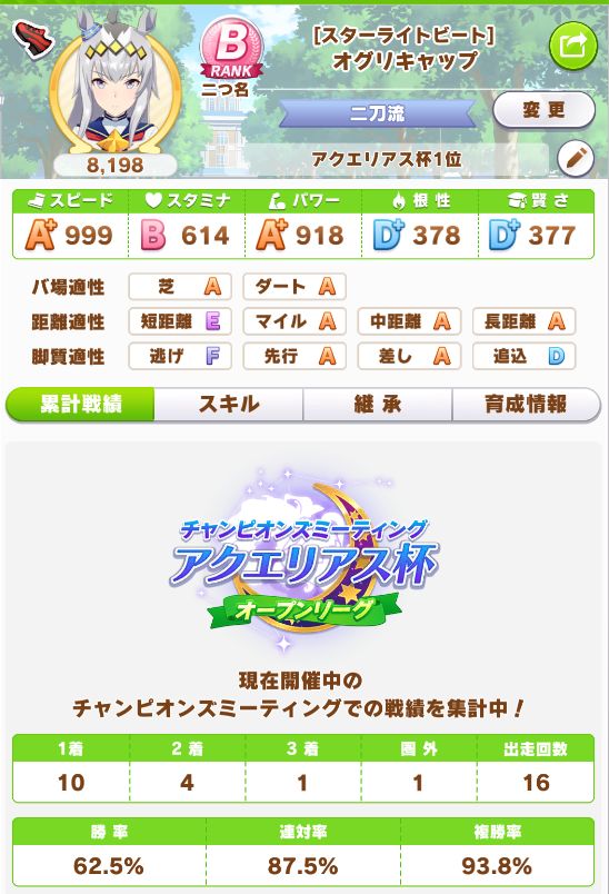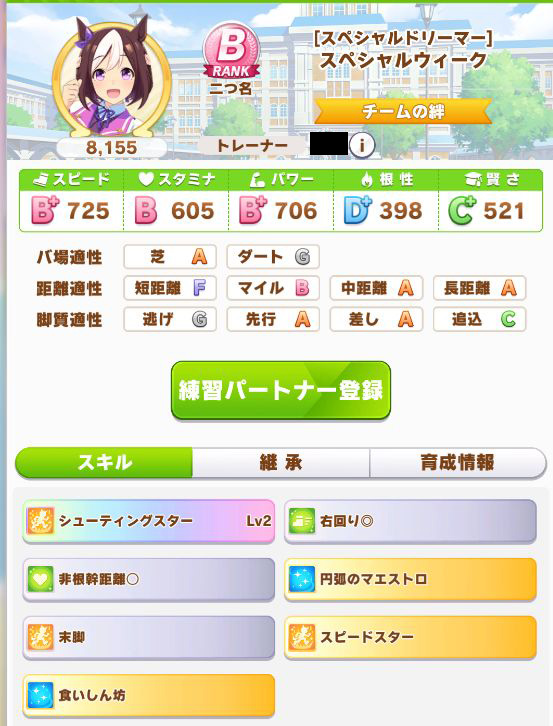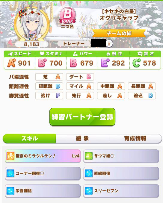 初育成でスピパワ4桁は良い感じ。