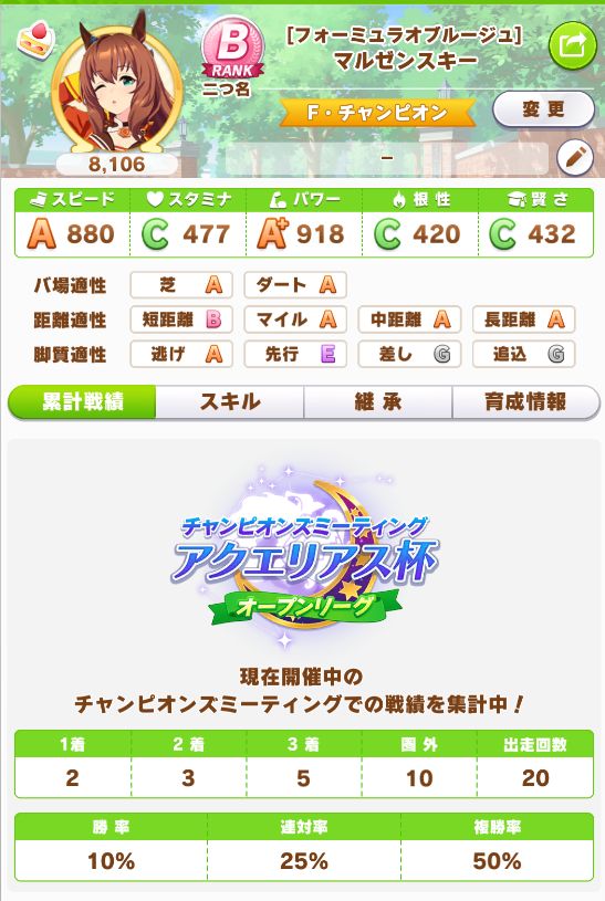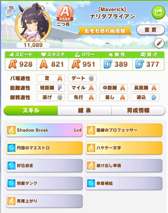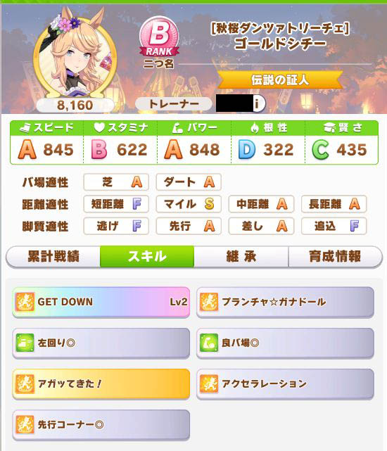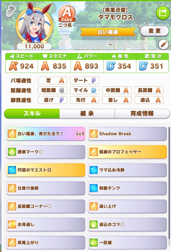 逃げに引き離されたり、差しスキルが繋がらない限りはほぼ勝てる安定性。