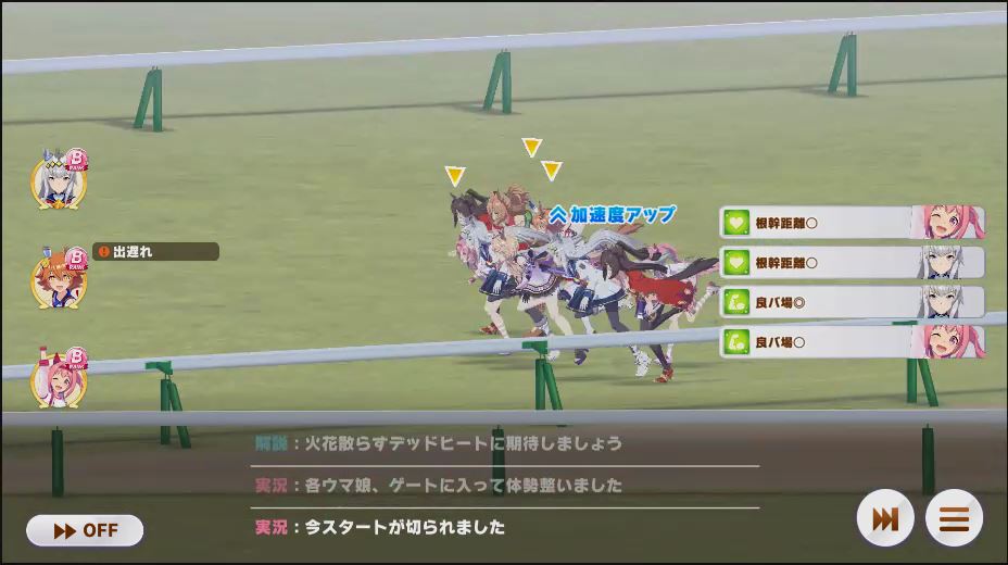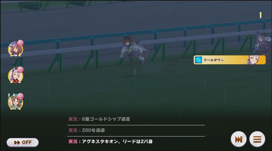 スタンド前、相手のゴルシが前に出たタイミングでデバフ(スタミナイーター)発動