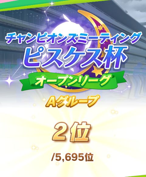 結果から書くとタウラス杯以来の、1位を獲れず2位という結果に。