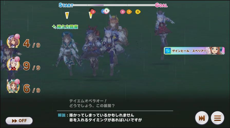 後方のフク、ゴルシと相手のチームメイトを除いた全員のスタミナを奪う。