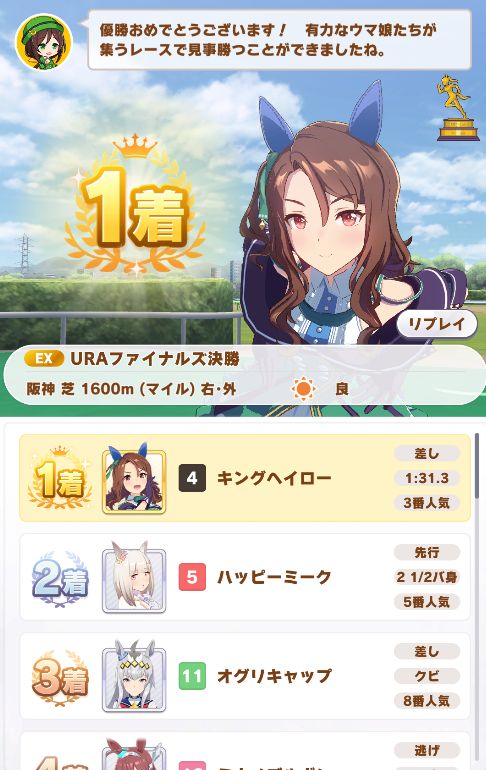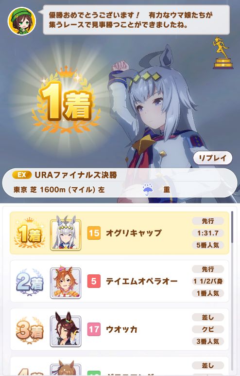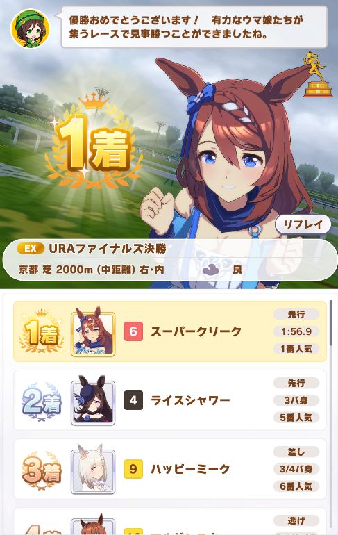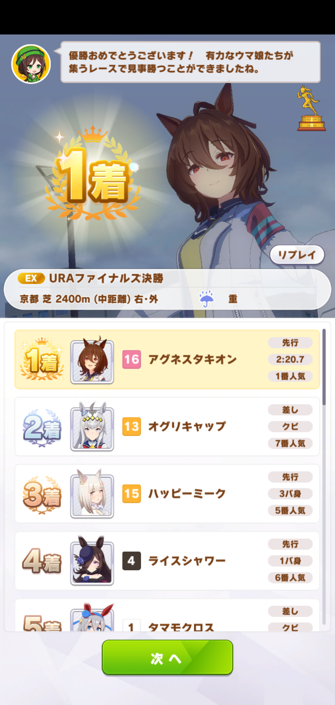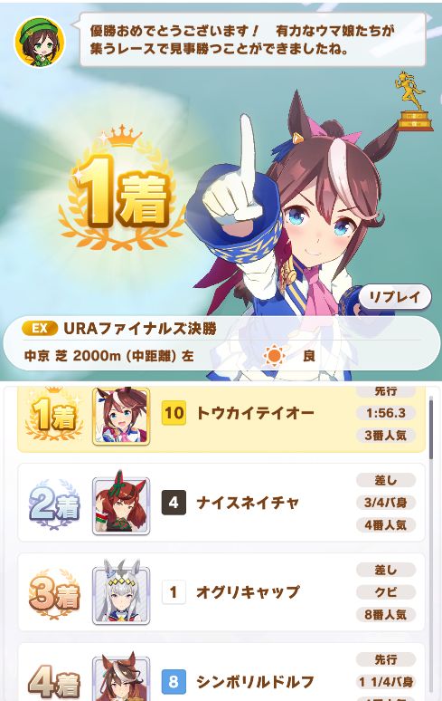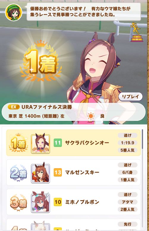 URAは決勝まで強い逃げキャラが来なかったので、決勝で強いのが来るのかと心配したが