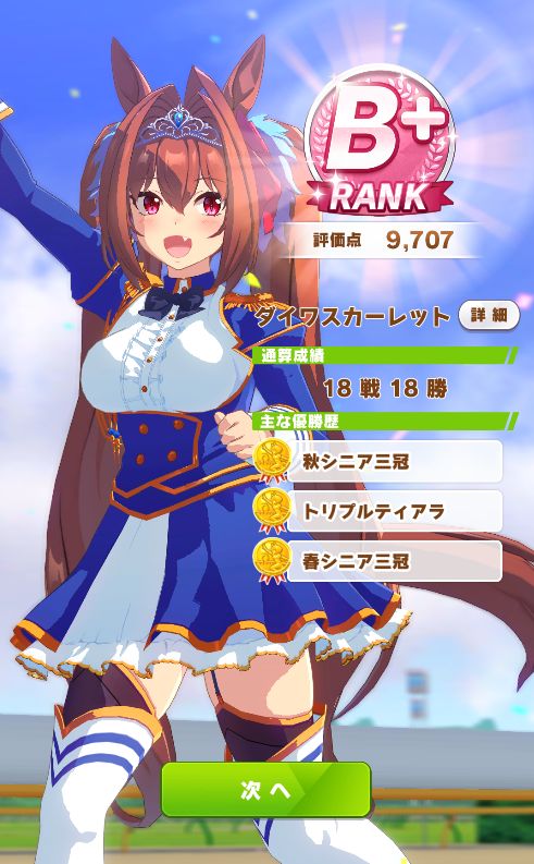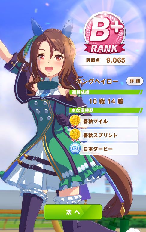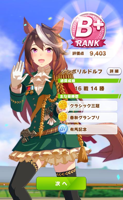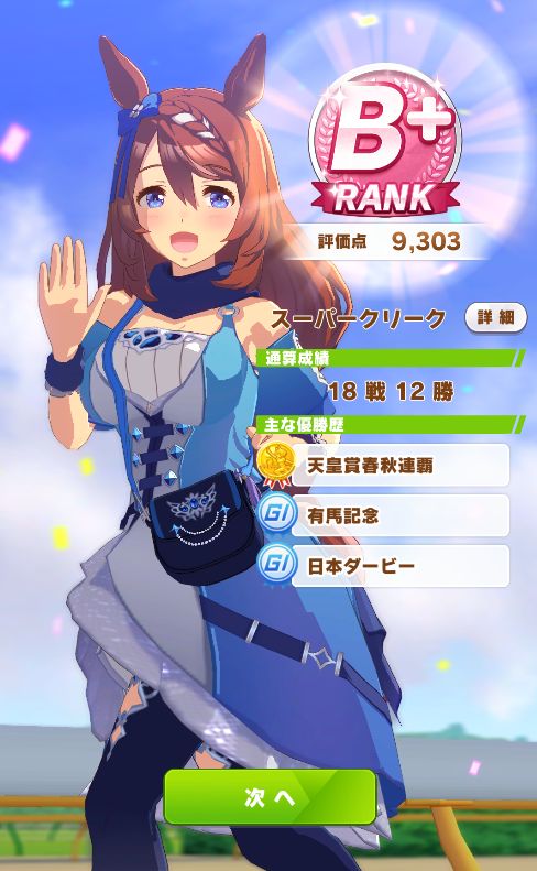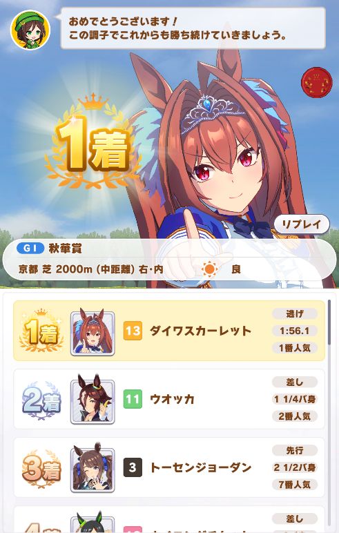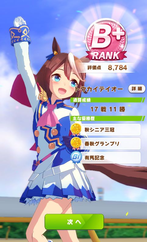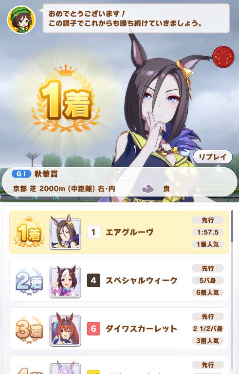 秋シニアも今度は無事獲得し、URAも全て1番人気でストレート勝利でノーコンクリア!