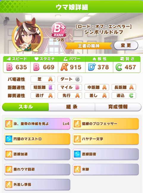 脚質は差しなので、前日のルドルフと同じ感じでの育成